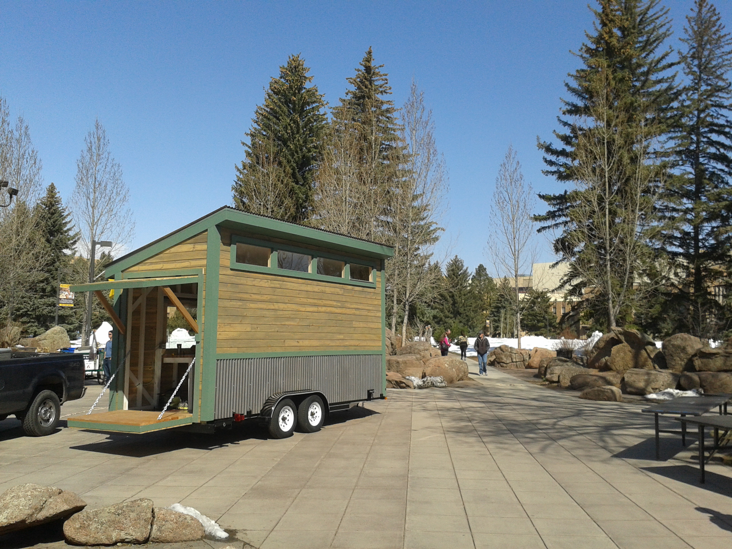 Earth Day April 22, Laramie WY – The WCC exhibited the tool cache in the center of campus. Thanks to the hard work of the crew leaders and Paul Pellissier, we have a tool cache now ready to populate with tools and organization. Paul is now building another tiny house for Laramie and open for future business. Check him out at Timbercraft Woodworks